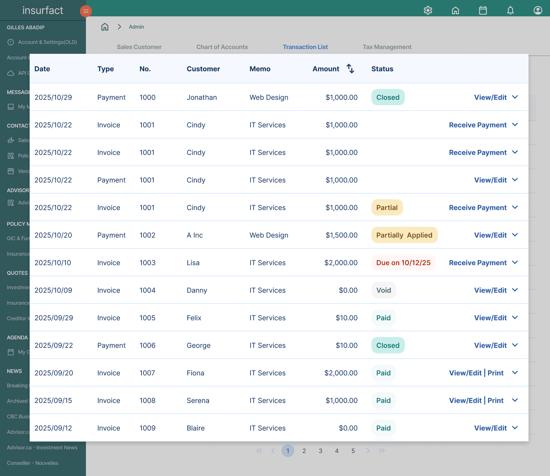 Rather than separating invoices and payments into different historical views, I designed the Transaction List to record invoice events and payment allocations together in a single chronological timeline.