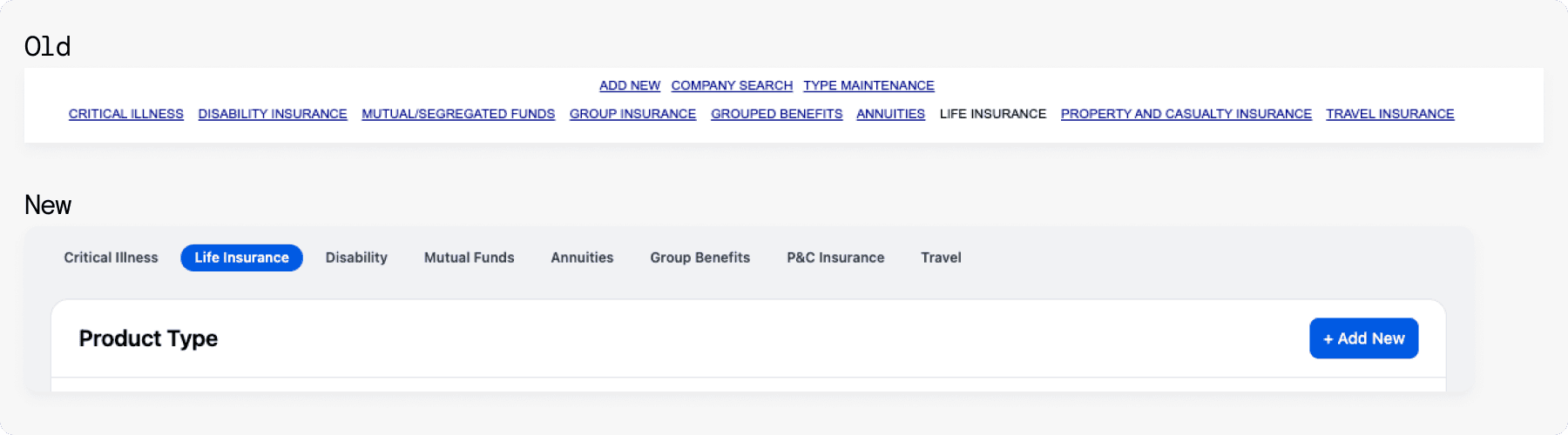 Mixing hundreds of types from different insurance categories made it difficult to manage products while certain product types are accessed far more frequently than others.